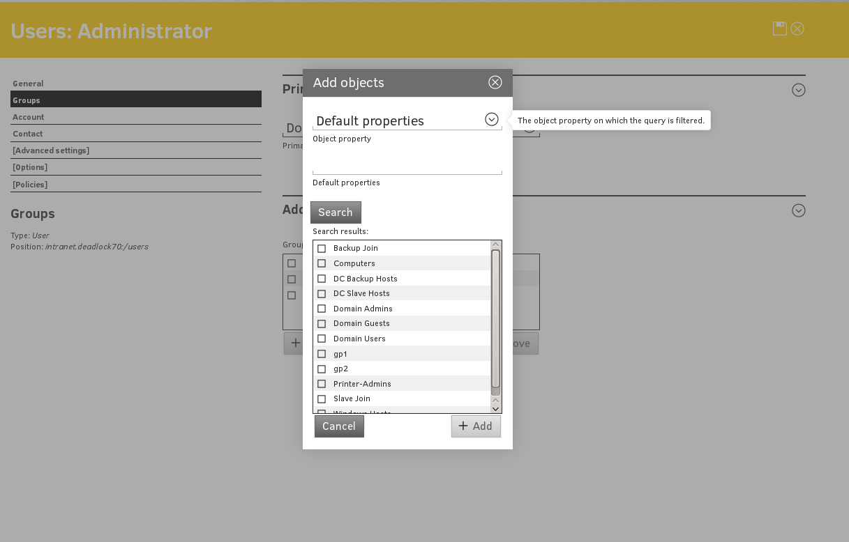 Screenshot 'Manage samba privileges'