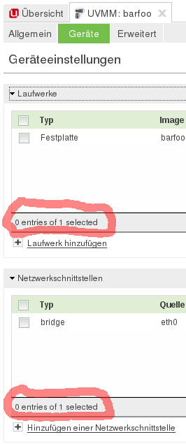Created attachment 3884 [details] Screenshot UVMM ? $VM ? Geräte: Unterhalb der Tabelen bei "Laufwerke" und "Netzwerkschnittstellen" steht dann trotz deutscher Locale folgender englischer Text: 0 entries of 1 selected