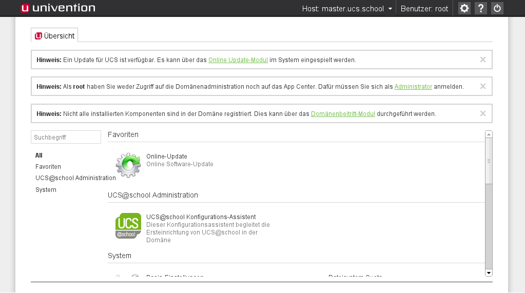 (In reply to Dirk Wiesenthal from comment #17) > When clicking on the "i" when there are no (and never have been any) > notifications for the very first time, a red empty bubble is shown. Normally > it contains the number of new notifications but here it is just empty. Correct. I fixed the handling of the red notification bubble. univention-management-console-frontend (3.0.131-1) unstable; urgency=low . * Bug #30004: fixed initial handling of the red notification bubble