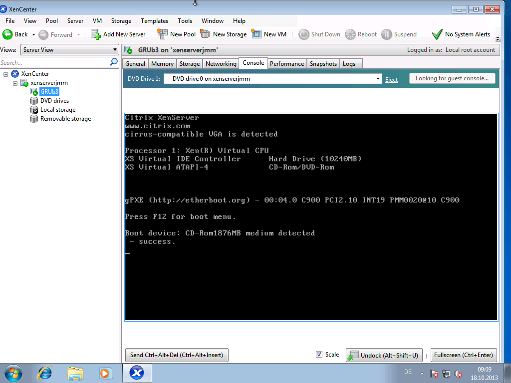 The grub menu of the installation DVD and of the installed system is not visible in Citrix XenServer 6.1. I've installed UCS with the template "Other install media".