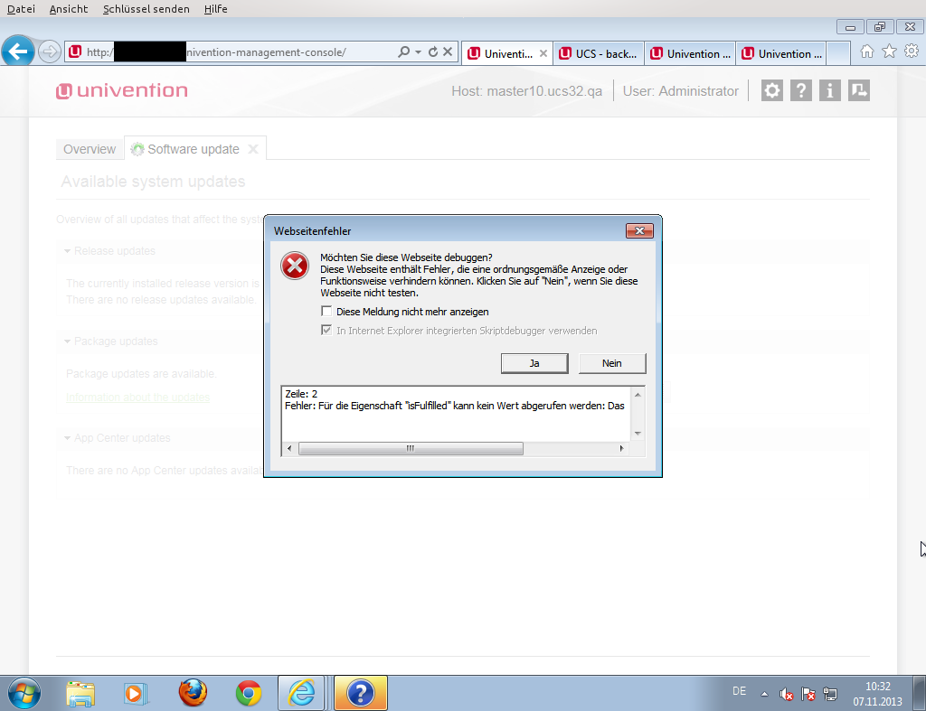 Created attachment 5573 [details] Screenshot IE9 … happened when pressing the button to launch the package update. It seems that the reference to the Deferred object (with the method isFulfilled()) is null.