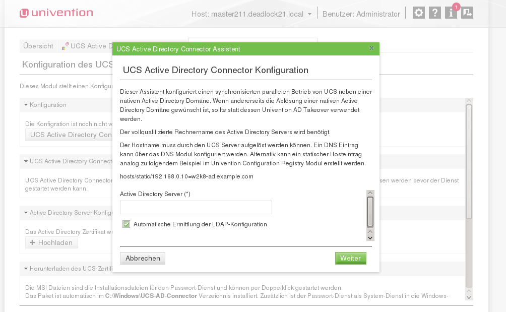 We should add a note on the UMC AD Connector wizard that univention-ad-takeover is the tool for the migration and UCS AD Connector is for the synchronization between AD and UCS.