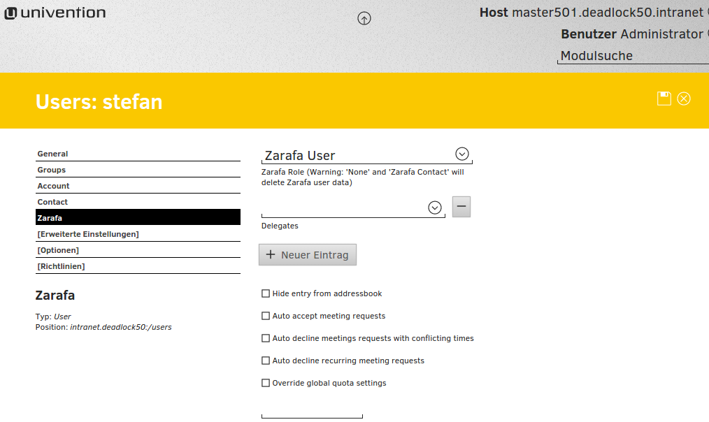 (In reply to Stefan Gohmann from comment #11) > Nearly perfect, just one thing. See attached screenshots: > zarafa-pre-relogin.png > zarafa-post-relogin.png > > Before I logout / login the field "Zarafa role" is not a drop down. Maybe a problem with syntaxes?