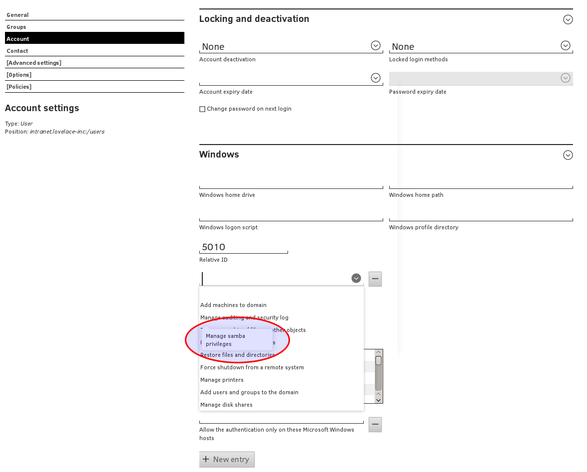 See error description below. Probably a better way would be to show a ?-icon that displays a tooltip when clicking upon it. Currently the handling of tooltips for form fields in general could be improved. Similar problems as described below may occur at different places. +++ This bug was initially created as a clone of Bug #36298 +++ I think the tooltip saying 'Manage samba privileges' in Users -> Account -> Windows should also be removed (or repositioned) since it overlaps the dropdown (see attached screenshot). Created attachment 6308 [details] Screenshot 'Manage samba privileges'