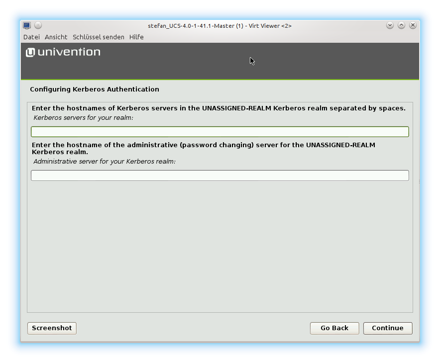 Created attachment 6654 [details] /tmp/kerberos.png See attached screen shot. The installer now asks for the kerberos servers (KDC) and the kerberos admin server.