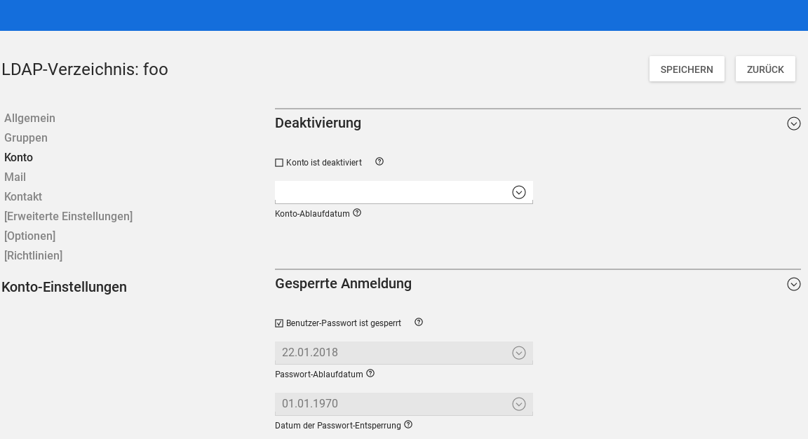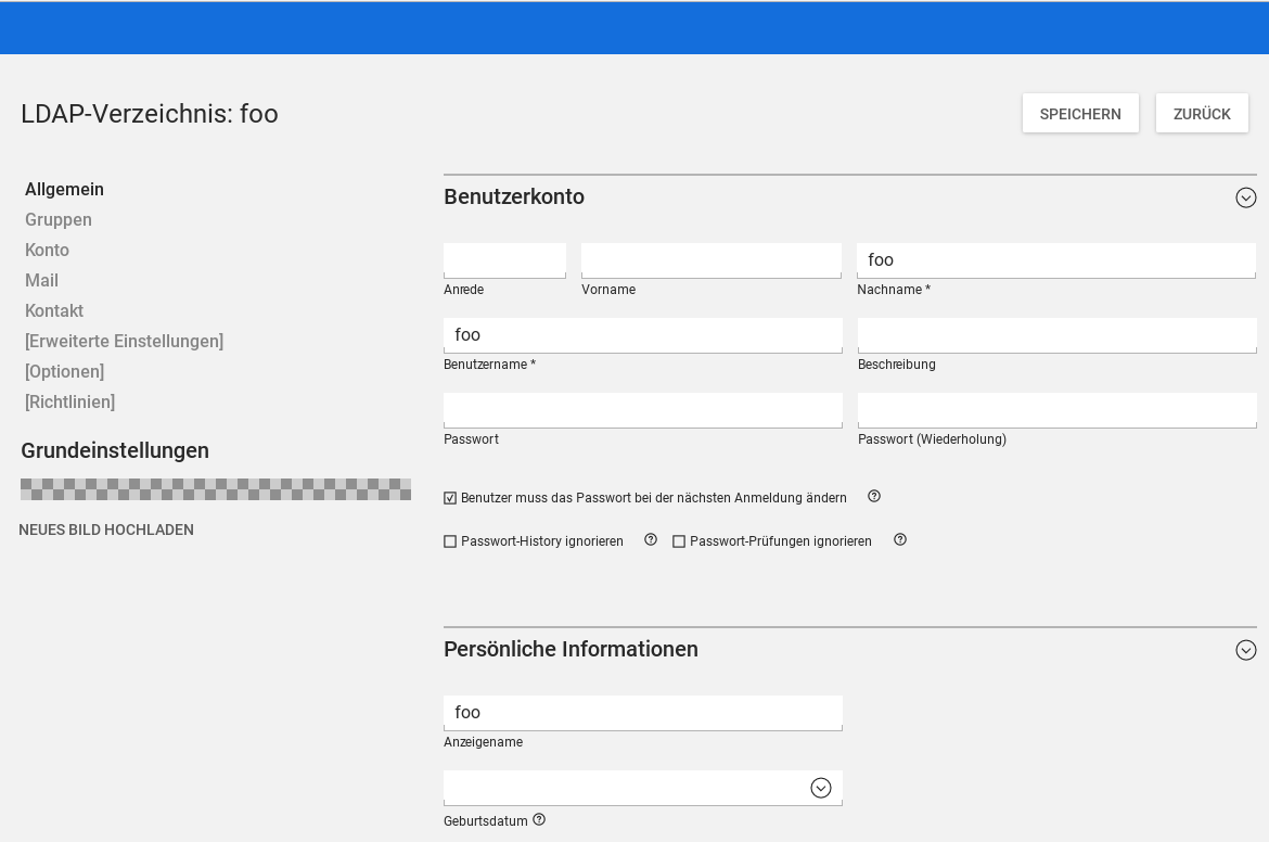 I don't think we should changes these two layout changes: (In reply to Florian Best from comment #20) > * Layout changes: > "mailPrimaryAdress" has been moved into a new tab "Mail", which contains > also all other mail related options. The mail address is not part of this bug and for me it makes sense to have the most used values on the first tab. > "pwdChangeNextLogin" has been moved to the password input fields, where it > technically and user-experience belongs to. Can you move it back to the account field?