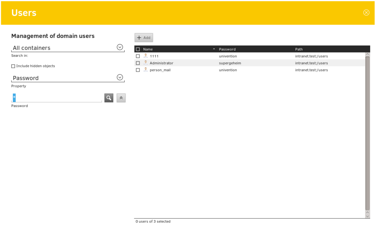Created attachment 7683 [details] Passwords are shown in plain text UMC shows the fetchmail passwords in plain text in the grid if the admin searches for the fetchmail's password property (see screenshot). It should be sufficient to disable the search for this property/extended attribute.