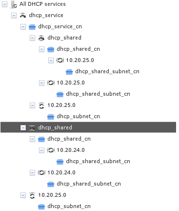 Created attachment 8101 [details] Screenshot DHCP tree structure (In reply to Florian Best from comment #12) > Created attachment 8100 [details] > script to create all DHCP objects The script creates the tree structure seen in the screenshot. It contains every DHCP objects under every possible position (including subcontainers).