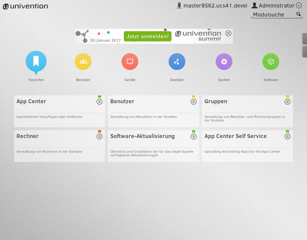 After the UMC login, a Univention Summit banner should be shown. The banner should be removed automatically at the 27th January 2017.