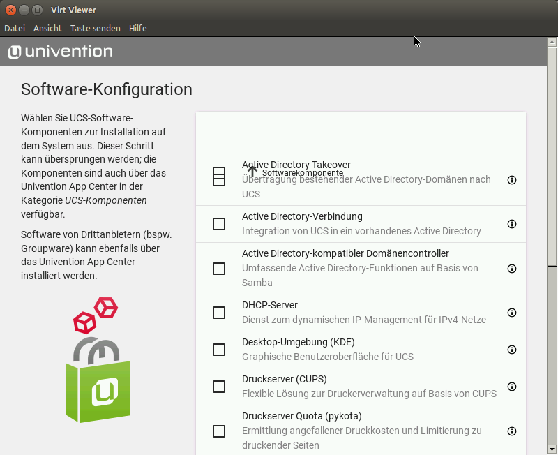 Created attachment 8546 [details] umc-software-selection.png The current status looks better. The string 'Softwarekomponente' is in the first entry. Currently, the user needs to scroll to reach the next button. Might it be possible to make it scrollable inline like in UCS 4.1?