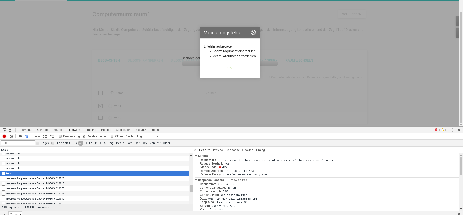 Created attachment 8884 [details] Screenshot 2 Hmm, I cannot finish an exam anymore when being logged in via SAML. These error pop ups occur in an endless loop always when trying to finish the exam.