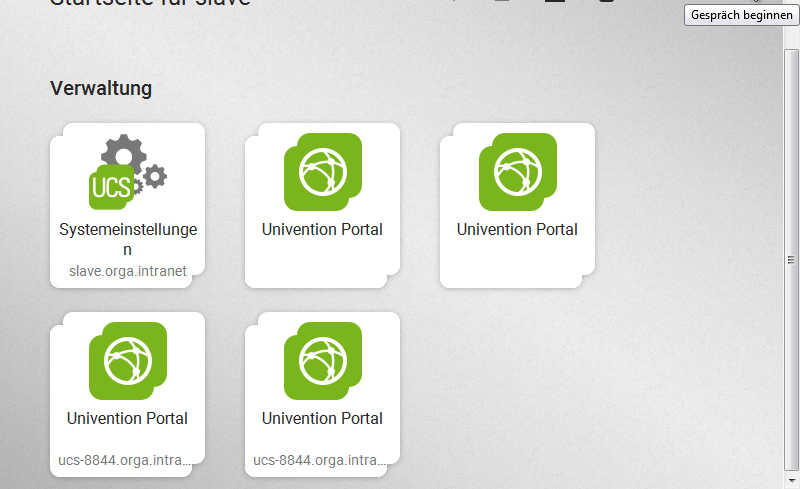 From portal.json: "links": [ "https://2001:…:ff12::a/univention/portal/", "http://2001:…:ff12::a/univention/portal/", "http://ucs-8844.orga.intranet/univention/portal/", "https://ucs-8844.orga.intranet/univention/portal/" ], ("…" added by me) This leads to four buttons. Two of which do nothing, because the IPv6 address is not properly encoded into the URL.