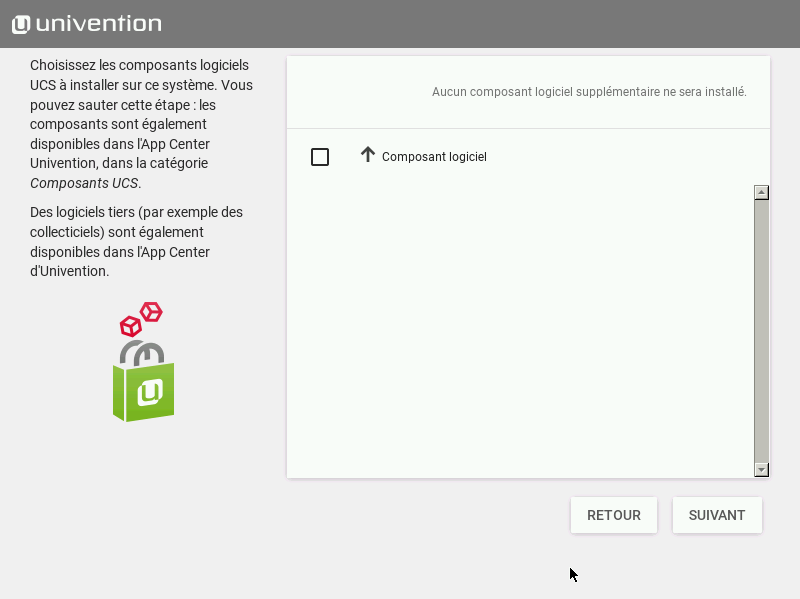 The current french installation test doesn't report this bug. Once this bug is fixed the test should be extended to avoid future regressions. I would suggest to select a component during the installation test by adding "--component mailserver" to the call of vnc-install-ucs.py in test/scenarios/install-testing/master-french-static-ip.cfg . For this to work, a translation for the component's text (in french) needs to be added here: test/utils/installation_test/languages/french.py