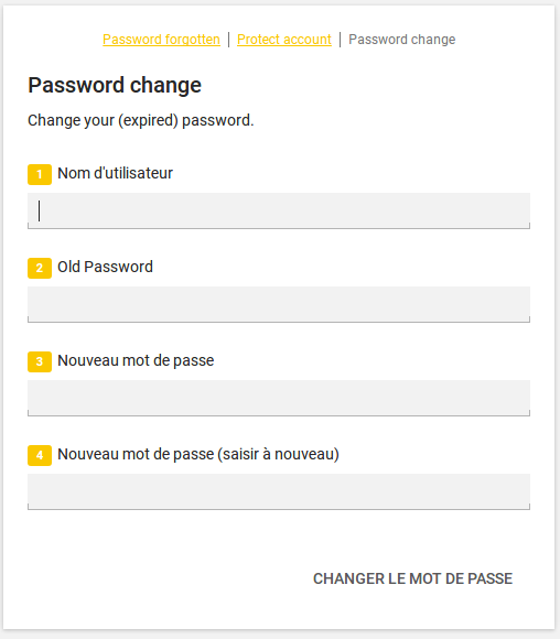 Created attachment 8724 [details] screenshot change password Parts of the new self-service module are not (display as) translated to french.