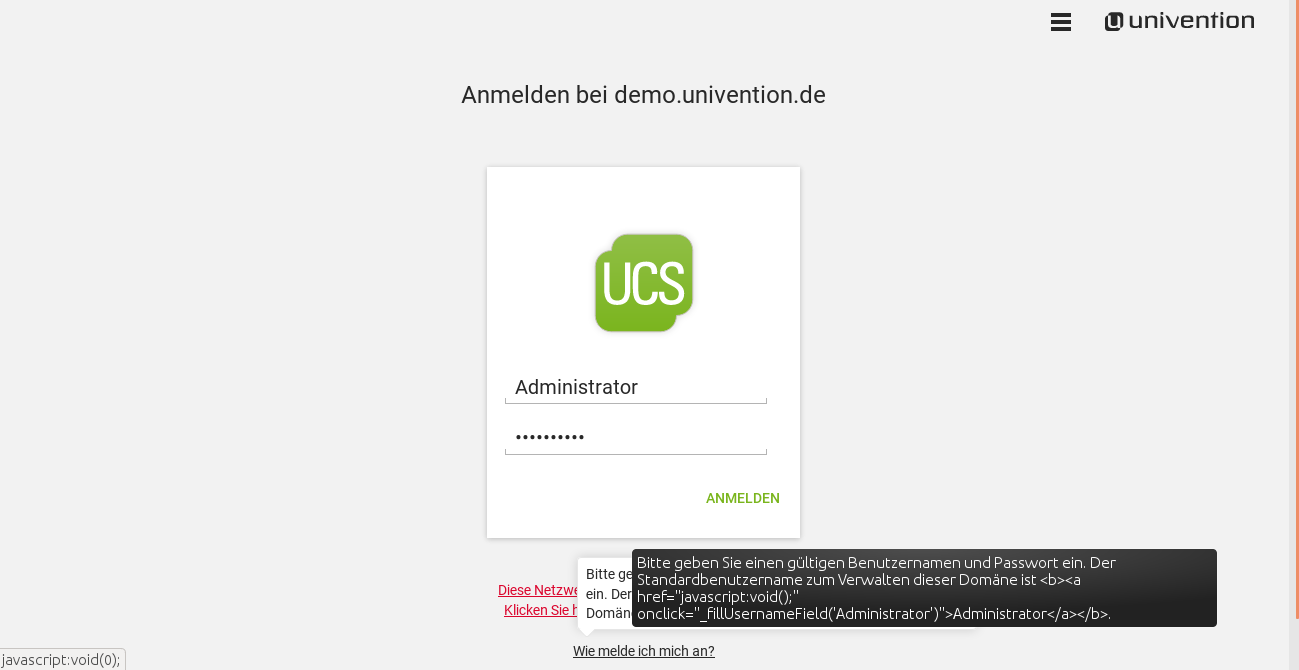 Created attachment 8815 [details] Screenshot of popups for links on login page The links below the login dialog on the UCS login page have a dojo popup as well as a browser popup (showing HTML code). The browser popup overlays the dojo one.