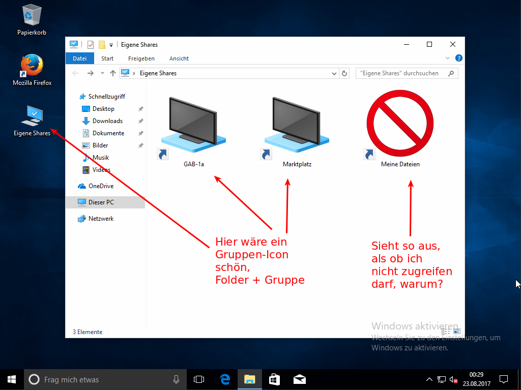 I wonder what icon best makes the connection to the term "Eigene Shares". Shares are usually associate with icons 138 (folder) or 29 (drive). How this connection is made by the current icon set? Should be change the term "Eigene Shares" to better fit the icon set?