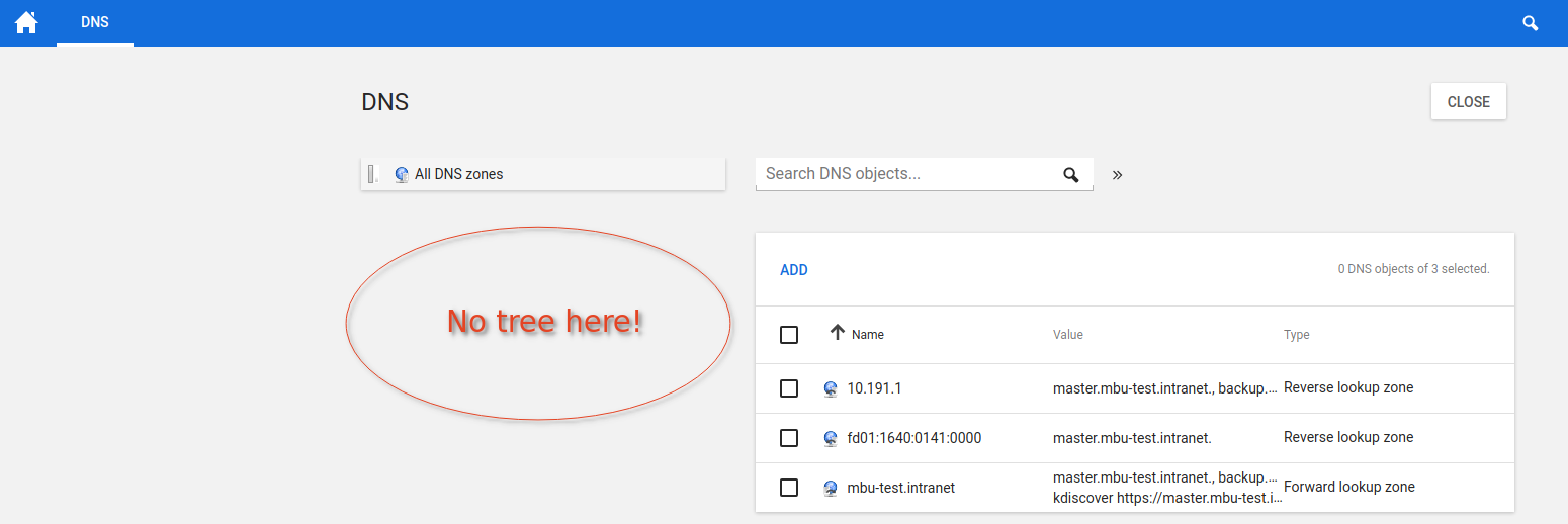 UCS 4.2-2 errata 204 If you add an IPv6 reverse lookup zone for ULAs (Unique Local Addresses), the navigational tree on the left in the UMC breaks down and doesn't load its nodes anymore. I'll attach a screenshot of what I mean. As soon as you delete said zone the navigational tree starts working again. How to reproduce: * Log in to UMC * Navigate to "Domain" → "DNS" * Add a "DNS: Reverse lookup zone" object * Use a ULA as the subnet, e.g. "fd01:1640:0141:0000", enter a server name * Save * Observe broken behavior This is also mentioned in the forum: https://help.univention.com/t/ipv6-reverse-dns/4841/6