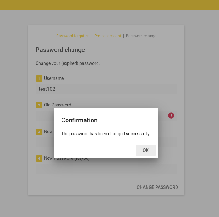 Created attachment 9345 [details] selfservice.png After changing my password via self service, I get a confirmation dialog. At the same time, the old password input field is marked as invalid, see screenshot.