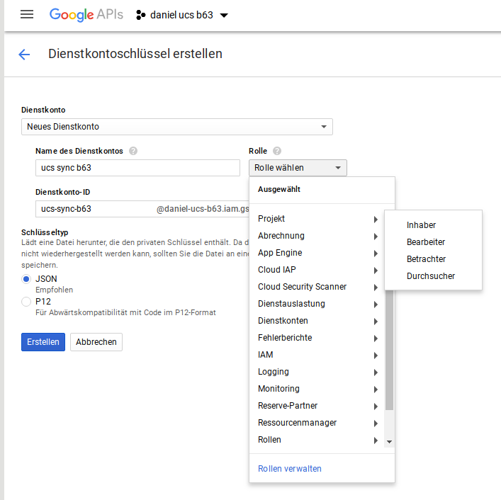 Created attachment 9619 [details] current new service account roles The "Dienstkontonutzer" role is no more (picture in app: http://10.200.3.63/univention/management/modules/googleapps/new_service_account_de.png). If you tell me which role must be used, I can update the screenshots (de + en).