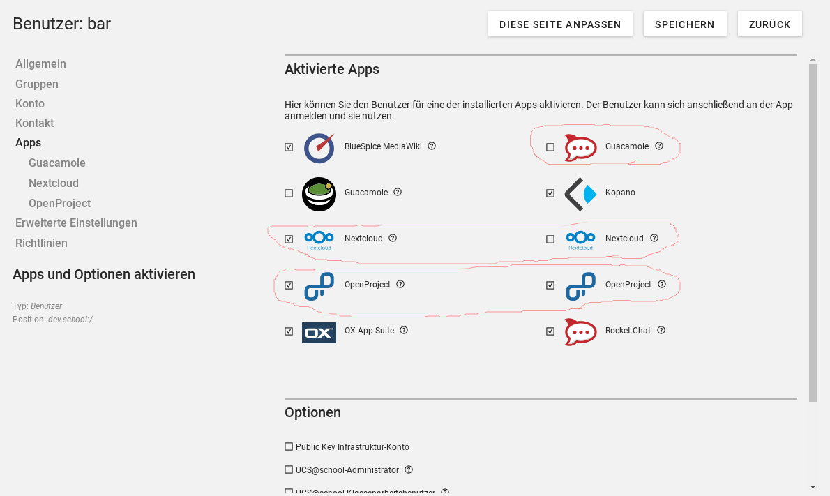 I adjusted the implementation so that it allows an alias for the option name, so that it doesn't need to be foobarActivated but foobarUser. This is required for user templates which store an option name. univention-appcenter (8.0.11-1) 244541eb7814 | Bug #48839: allow attribute:option syntax for app.umc_options_attributes univention-management-console-module-udm (9.0.11-1) 3bbfe4c58dd6 | Bug #48839: use attribute:option syntax for app.umc_options_attributes