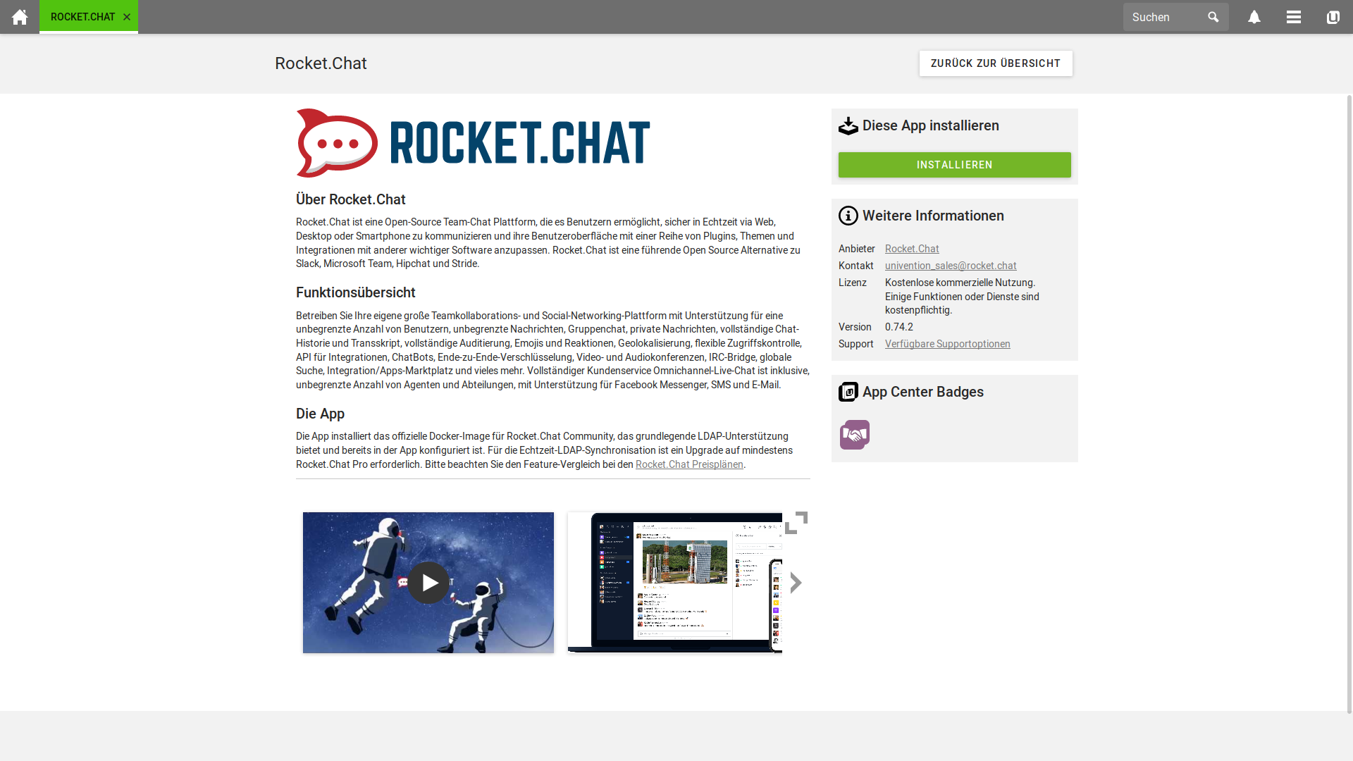 Created attachment 9882 [details] Screenshot of app detail page in UCS 4.3 Please note the note at the bottom of the app detail page.