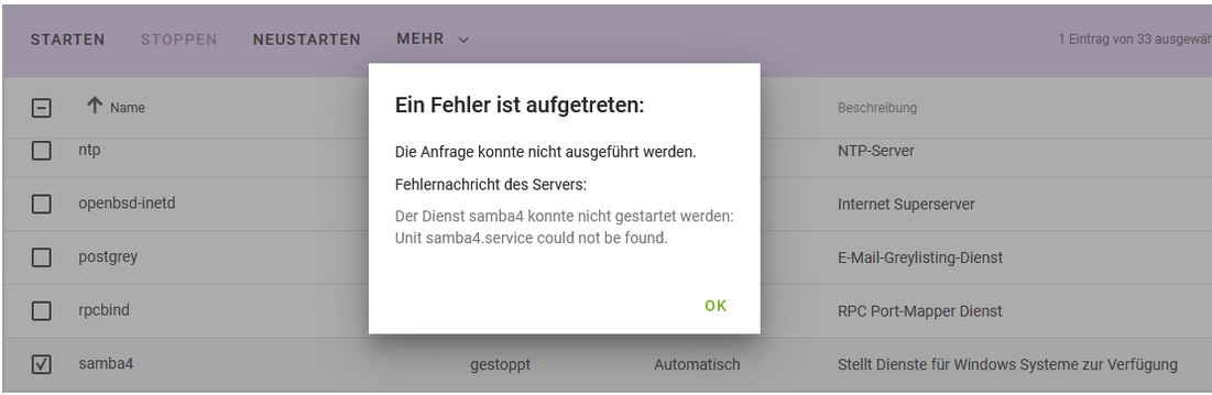 Created attachment 9952 [details] Problem_systemdienst The system service module shows a samba4.service for autostart. The customer wanted to start samba4, but got the attached message. samba4.service could not be found. That is true, we do not have a samba4.service. The service for samba to be started is samba-ad-dc.service and this was already running. I guess the module uses the ucr value samba4/autostart ?