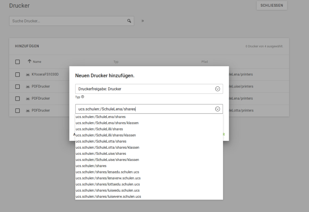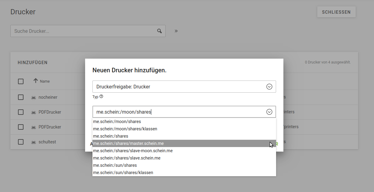 Both in the customer environment and in at least two test environments, only shares containers are displayed for selection in the standard containers of the printer module, but no printer containers. To show what the problem is, two attached Screenshots