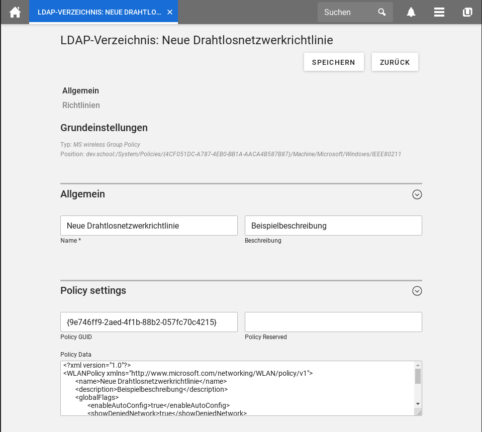 What I tested: Wired and Wireless Policies are synced to ldap -> OK Policies are shown in udm and umc -> OK Policies, created on the master in a multi school env, are synced to a school -> OK Changes in ldap are synced back to s4 -> OK Test are green on my test machine -> OK, Thanks for adding them! :) Note: QA for IPsec Policies has been done by Julia QA for Software Policies has been done by Johannes Please add your results :) Waiting for jenkins results