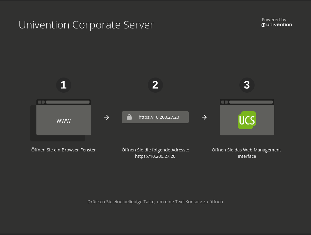 It is possible to switch between a light and dark theme: ucr set bootsplash/theme='ucs' # dark theme (default) ucr set bootsplash/theme='ucs-light' # light theme [5.0-0 a0dc657a70] Bug #52797: Update splash to new design [5.0-0 8f8cee00b7] Bug #52797, #52797: changelog [5.0-0 6b249ac060] Bug #52797: add missing copyright notice A reboot should be enough to get the new theme.