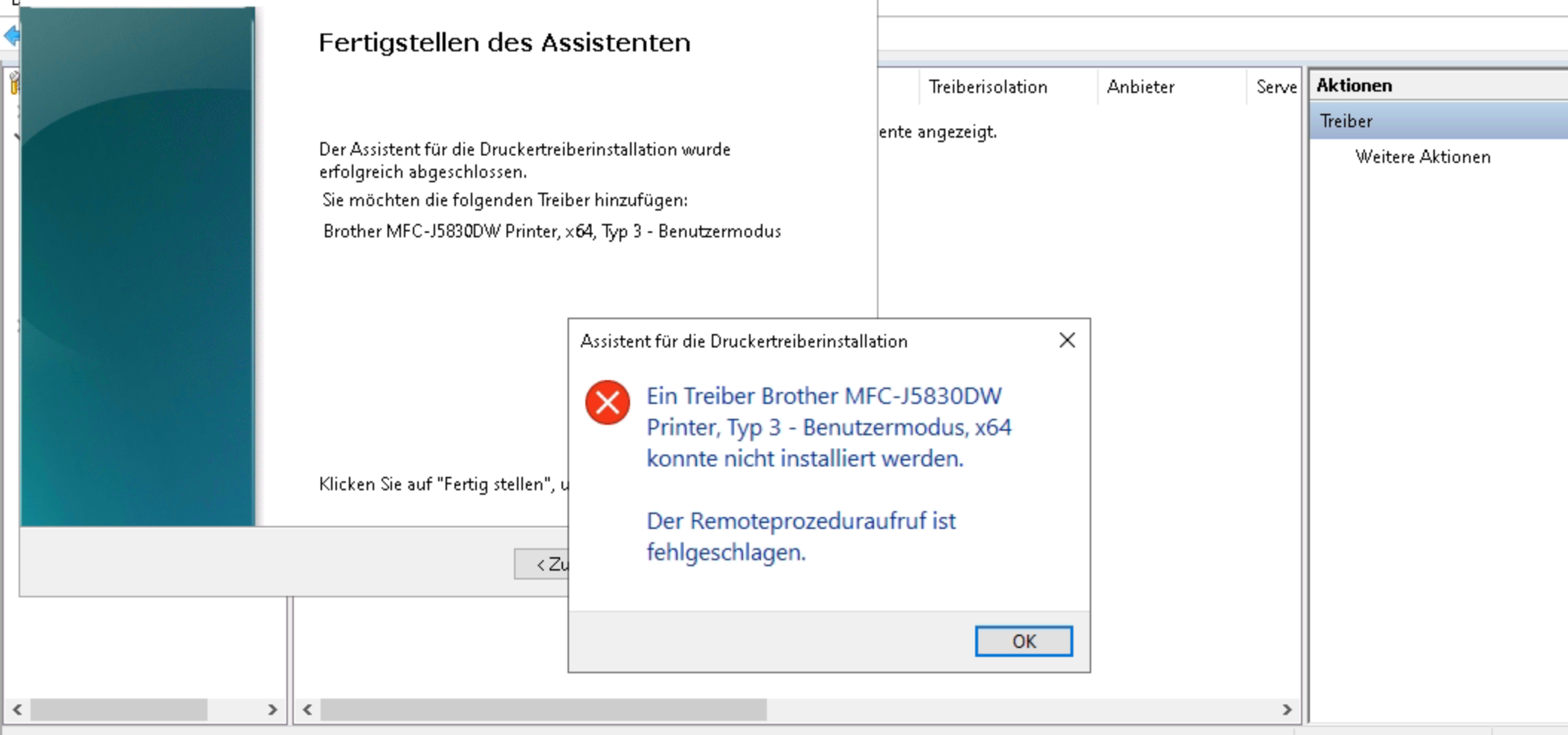 The driver I used was: https://support.brother.com/g/b/downloadlist.aspx?c=us_ot&lang=en&prod=mfcj6530dw_us_eu_as&os=10013 But I tried to upload another (HP) driver too and got the same RPC failure.