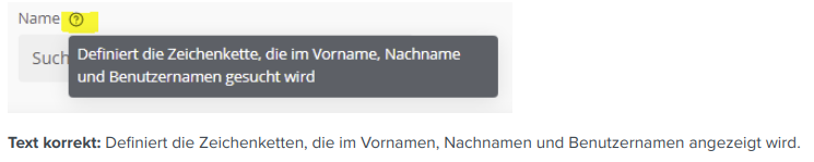 German description text of name is "Definiert die Zeichenkette, die im Vorname, Nachname und Benutzernamen angezeigt wird" which is gramatically incorrect and should be "Definiert die Zeichenketten, die im Vornamen, Nachnamen und Benutzernamen angezeigt wird.".